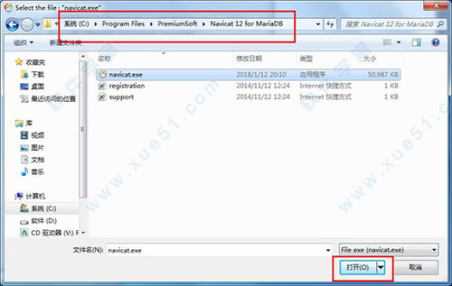 3、弹出界面中选择navicatv12.exe的应用程序(在软件安装目录下);