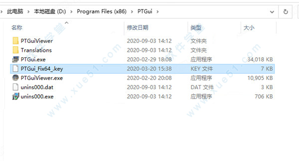 1、成功安装软件后,将PTGui_Fix64_.key许可文件复制到软件安装路径下即可激活软件