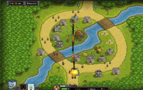 总之,哪个地方敌人可能偷过就尽早补好防守,只要注意这几点,这关也不难过~ 信得过自己操作的,支援右边,目测狼的数量然后放火雨。不能的就造兵营,最后在中间那空的位置造一个炮塔,用支援堵住巫师让炮塔杀巫师。