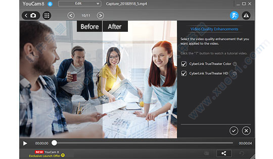 3、高清影像提升智能影像提升技术,独家内建讯连科技TrueTheater®影像提升技术,仅需一键点击,自动调整光线和锐利度。您也能手动校正影像噪声、对比、光线和视频质量。