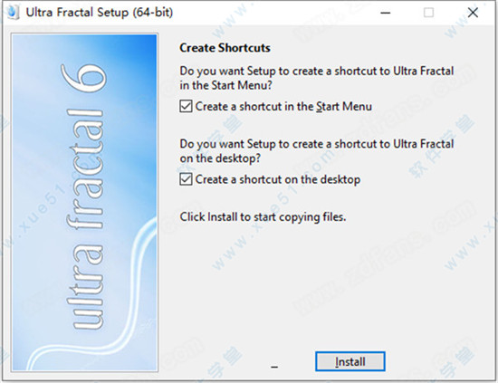 5、自行选择是否勾选创建桌面图标,点击Install开始安装