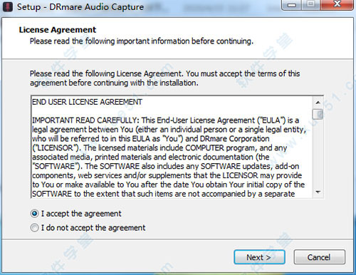1、首先运行软件安装程序,进入向导界面,点击第一项同意软件相关许可协议