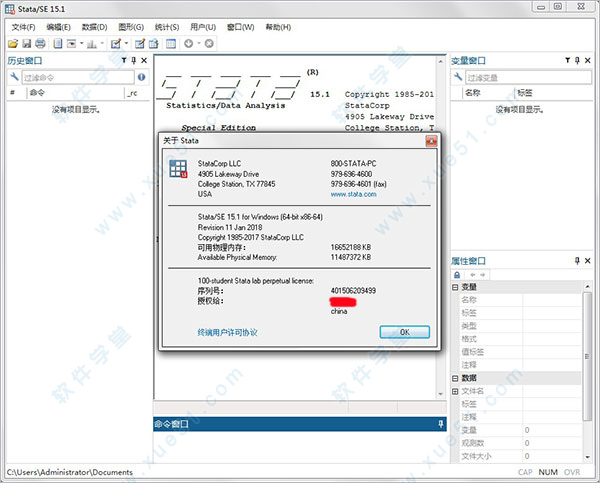 8、在桌面重新启动软件,进入软件主界面已显示为简体中文语言,至此,stata15.1中文破解版成功授权,用户可无功能限制和无语言束缚轻松自由地使用啦