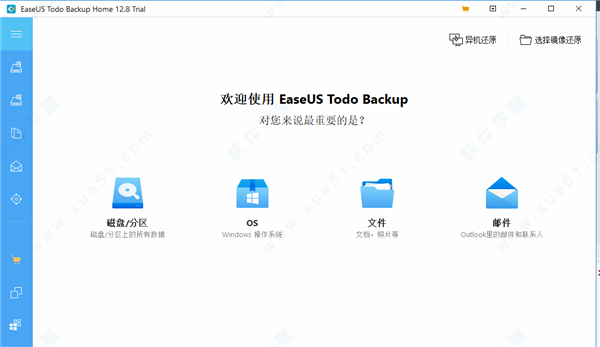 EaseUS Todo Backup Home是一款功能强大的系统备份软件,能够帮助用户更好的保护电脑中的文件以及信息的安全。软件在电脑出现无法挽回的问题的时候,能够将用户所备份的文件进行导出,可以选择导出到新电脑中。软件能够进行多种形式的备份,用户可以选择进行差异备份以及全体备份。差异备份是将新增内容进行备份,也就是现在电脑中的文件和之前电脑中文件相比较新增的文件。该类型备份能够大概路覆盖到用户的工作所需要的文件,能够保证用户在电脑出现问题的时候提取文件速度较快能够更加的重新开始工作。而全体备份则是将整个电脑进行备份,这样的优点是能够将整个电脑进行完美的还原,用户即使电脑出现重大问题也不会出现文件数据丢失的情况。缺点也十分的明显,备份时间较长提取还原较慢。用户可以在这两种备份类型中根据自身需求进行选择。工作的时候出现停电的情况,而自己手上的表格或者文件没有完成,但是强制关机来不及保存,这样十分容易出现工作白干的情况。而这款软甲能够帮助将这种情况丢失的文件进行还原。