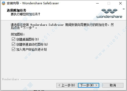 5、选择附加任务,创建桌面图标、创建快速启动栏图标以及加入用户体验改进计划,随用户自由选择