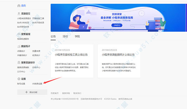 1、在站长平台绑定成功后点击“移动专区”进入熊掌号控制面板。