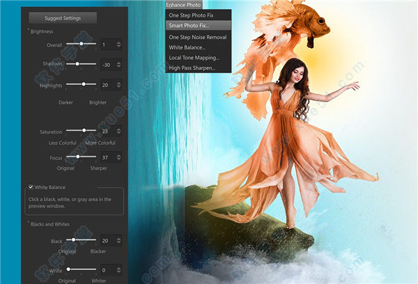 使用对象去除器去除瑕疵,对象和干扰物,或尝试使用内容感知的编辑工具(如SmartClone,Magic Move和Magic Fill)自动填充空白区域,使用化妆和修饰工具消除红眼,斑点和多余的线条或平滑的皱纹,增白牙齿,甚至使肤色均匀。