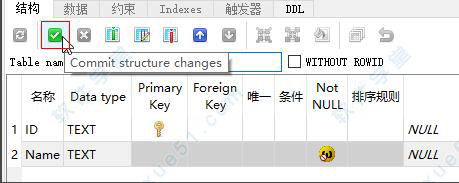 7、点击“Commit structure changes”图标以便保存该表及字段;