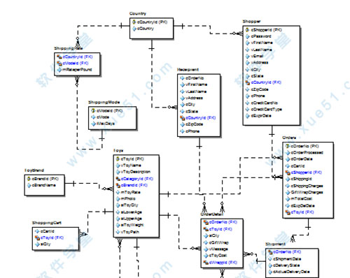 (4) Non-Specific Relationship(非具体关系) 这个关系主要是实现多对多的关系。因为现在多对多的逻辑关系还没有被很好的解决,所以在这种关系类型下也不能产生任何的外键。这种关系类型在数据库模型中 很少使用,若你要将数据库模型标准化,最好在实体间将此关系去除。