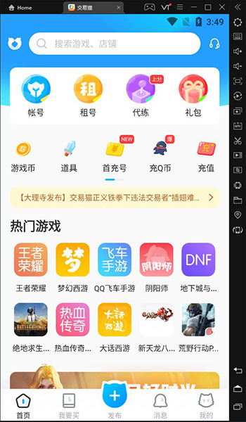 交易猫电脑版,目前官方还没有出电脑版,这里提供的电脑版是通过借助模拟器在电脑端运行使用的程序软件,在电脑上使用屏幕更大,画面清晰,操作也灵活,更好玩,下文有具体的电脑版安装方法,喜欢玩各种好玩游戏的玩家欢迎前来下载体验哦!