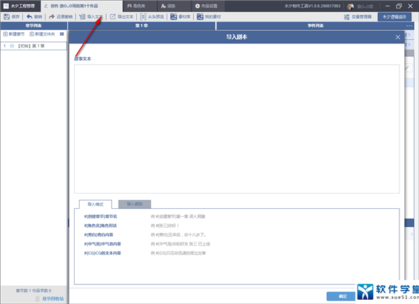8、点击点击到入文本按钮弹出导入剧本弹框,改哪天考可以点击选中导入格式和导入给咱,点击确定即可完成剧本导入
