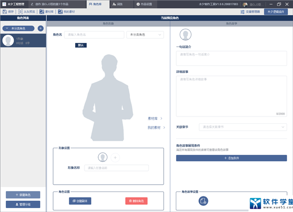 10、点击角色创建进入角色创建设置页面,该页面可以进行角色故事编写和详细故事输入,点击创建即可完成角色创建