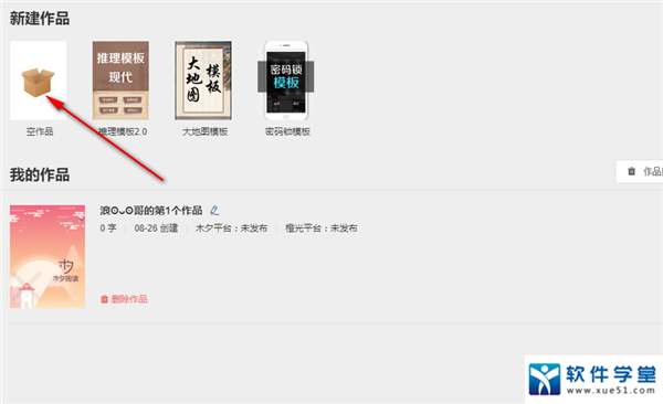 3、点击选择作品创建模板即可成功创建作品,点击作品即可进入对应操作页面