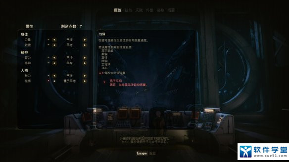 属性分为身体、精神和人格三大类,每一类中又有两个具体能力供玩家选择。初始会给予玩家六点属性点,可以根据专精方向以及游戏风格来进行分配。每项能力都有低于平均、平均、好、高和非常高五个阶段,每次加点都能让能力提升一阶。另外让能力低于平均值会获得额外一个属性点,但需要承担其带来的副作用。