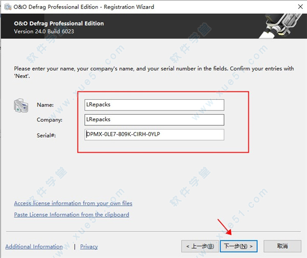 7、将key.txt文本内注册信息复制到软件注册界面相对应方框中即可激活破解软件,包括用户名,公司名以及激活注册码