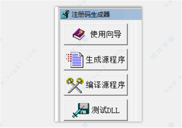 万能注册码生成器它可以用效的避免软件的盗版及其重复注册,切实保护软件开发者的版权。随软件一同提供免费的DLL源程序生成器工具,DLL注册码查询工具,启动应用程序时的注册对话框示例程序及全部C++源代码等。