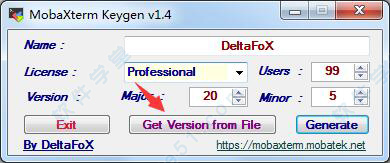1、然后运行打开Keygen文件内MobaXterm_Keygen_v1.4_By_DeltaFoX.exe注册机,弹出界面,点击Get Version from File