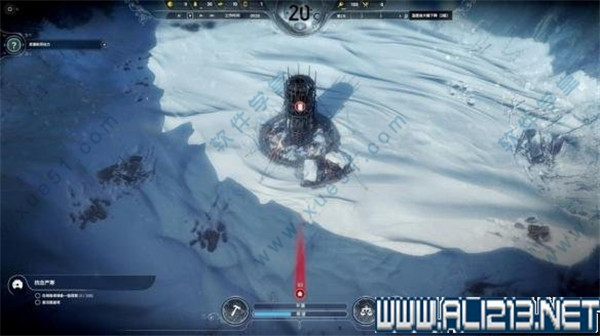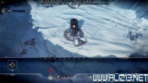 注意锤子图标旁的箭头所示的道路图标,在雪地中修建道路可以让工人更快的赶到工作地点。