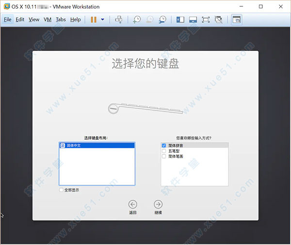 输入法选中“简体拼音”,然后点击“继续”即可;