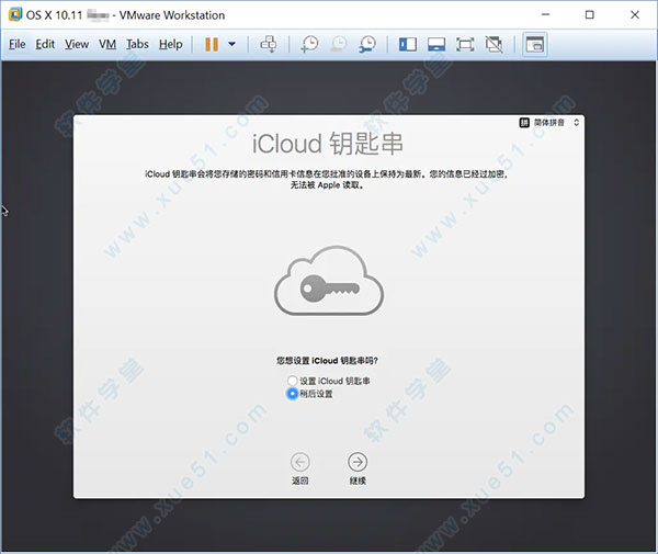 14、弹出弹框询问你是否开启“查找我的Mac”,点击“允许”,是否设置iCloud钥匙串,选择“稍后设置”;
