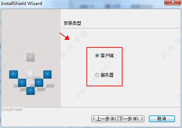 6、根据使用者选择安装客户端还是服务端。