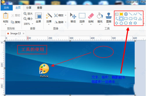 3、我们先来试试箭头,矩形,椭圆,文本工具好用不?