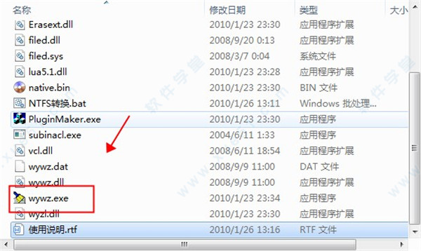 4、〖WYWZ〗的文件:无影无踪软件文件夹下一共有以下12个文件和3个文件夹:Wywz.exe、Eraser.dll、Erasext.dll、PluginMaker.exe、Subinacl.exe、使用说明.RTF、wyzl.dll、filed.dll、filed.sys、Native.bin、vcl.dll、lua5.1.dll和文件夹Plugins、Language、DefPlugins。另外config.ini是你的配置文件,如不存在,从新保存配置之后又会生成。所有exe、dll、sys、bin文件都是程序文件,是使用〖WYWZ〗必须的文件,“使用说明.RTF”就是本文档;文件夹Plugins里面有你当前全部用于清理的插件,你可以复制传递一个或者多个插件,如果你受到他人的插件,请保存到这个目录。DefPlugins是系统缺省的清理脚本,请不要随便改动和删除,否则系统将无法进行正常的清理操作。Language为多语言文件配置目录,目前支持3种语言类型的界面,简体,正体和英文。请不要删除该目录里的文件,否则界面将无法正常显示。