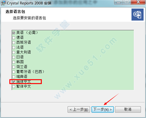 5、选择软件语言包,点击下一步