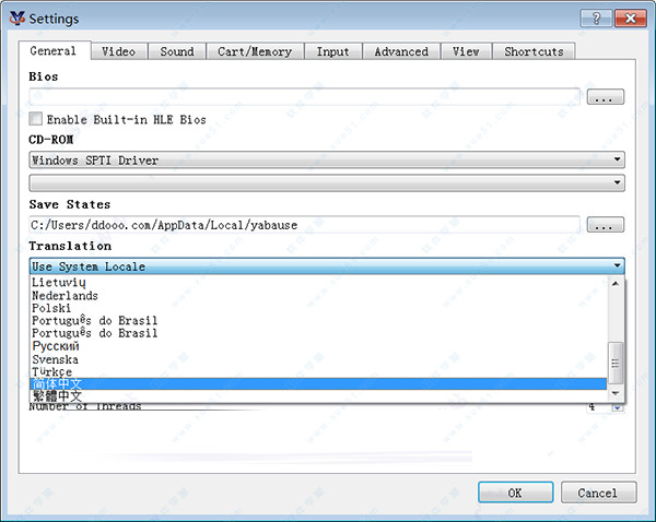 2、进入设置中文的窗口,选择Translation选项的简体中文,然后点击右下方的OK。