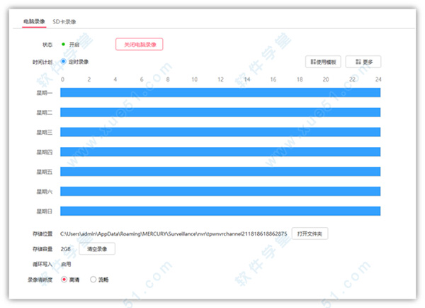 3、添加好摄像头,在客户端中设置了录像计划,电脑会按计划自动录像。在【设置>存储计划】中,可以设置对应摄像头的录像时间;