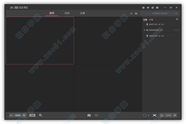 在客户端的预览界面,【设备】或【分组】中选择需要观看的IPC,即可观看远程实时监控画面了。