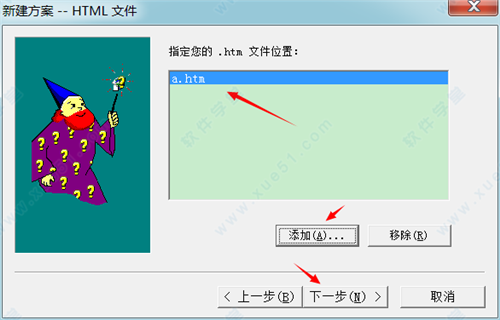 4、只需添加html文件,勾选【html文件】,其他两项不要勾选,如果已经做好目录和检索文件也可以勾选,点击下一步