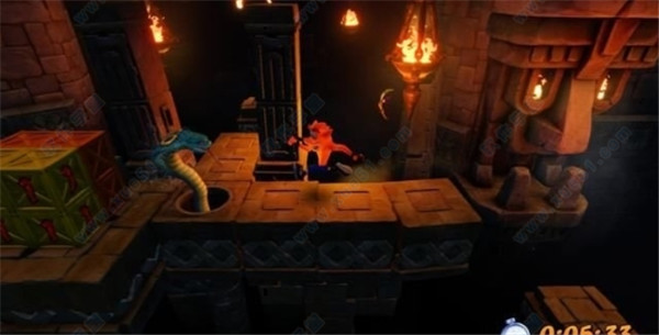 竞速模式难度较大,戳长矛的地方击打蛇头弹碎后面的时间箱,在长矛戳第一下之前可以跑过去,不然要等好几秒。