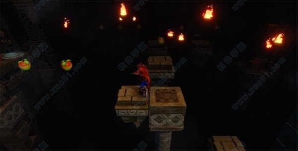 如图位置,有几个悬空苹果的地方,过去是有个隐形桥的,收集钻石的话需要过去打烂大堆箱子。