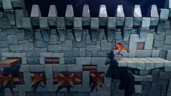 3-2 CORTEX POWER(收集:1钻石 1圣物 )岔道走右再走右,去老鼠人那踩金属箱开启隐身桥。