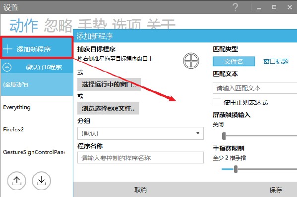 可直接将可执行文件(.exe)或快捷方式拖到本软件窗口内,根据文件名来添加一个新程序。或点击左上角添加新程序按钮打开*添加新程序窗口。