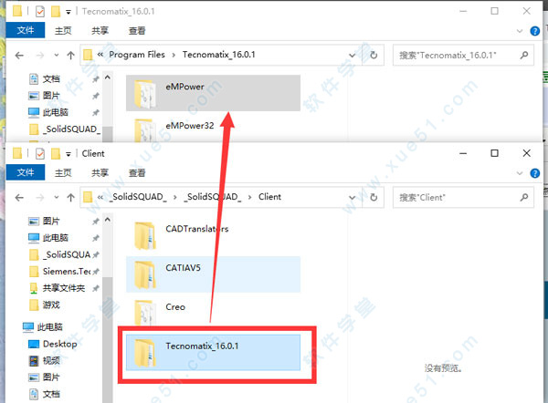 10、最后将_SolidSQUAD_/Client文件夹下Tecnomatix_16.0.1文件复制到软件安装路径下进行替换