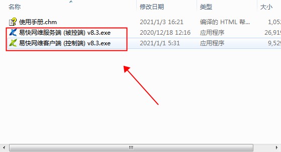 1、从本站下载解压之后根据设备是使用端还是被控制选择.exe安装。