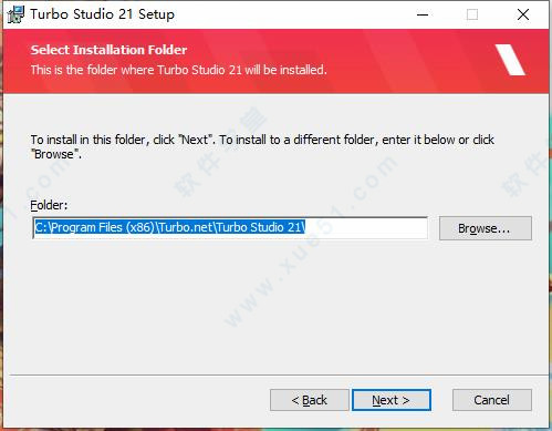 3、点击“Browse”可更改安装软件位置,安装向导默认设置的软件默认安装路径为C:\Program Files (x86)\Turbo.net\Turbo Studio 21。