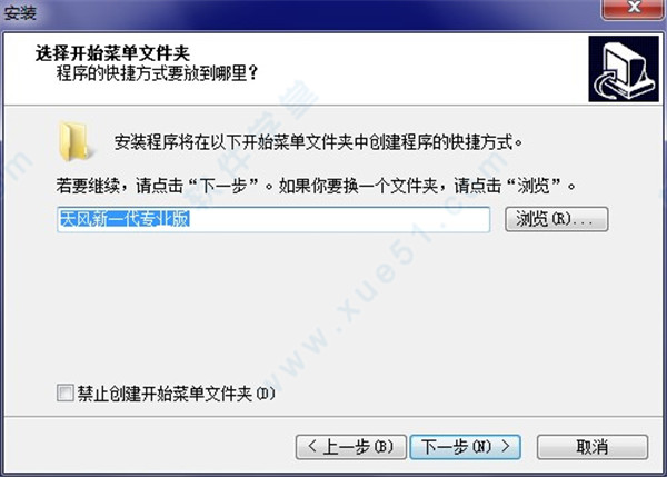 4、选择开始菜单文件夹的名字,或者可以不创建,点击浏览选择一个文件夹即可。