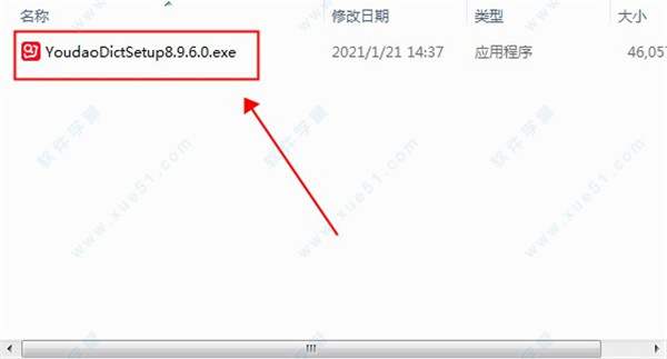 1、从本站下载网易有道词典解压之后找到对应的“.exe”安装向导,双击运行。
