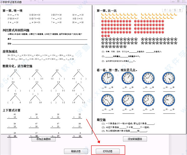 试卷生成器免费版,这个版本的使用是完全的免费的,并且支持小学一年级到六年级的数学的所有的题型,都可以一键式生成,非常的方便,有需要的朋友可以从本站下载体验。