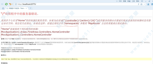 4、打开App_Start下的RouteConfig.cs文件,为路由的映射添加:namespaces:new string[]{“根目录下Controller所在的命名空间”}