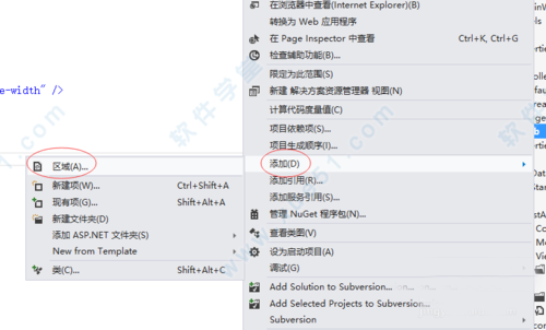 2、然后右键MVC4应用程序,选择“添加(D)”->“区域(A)”,填写区域名称