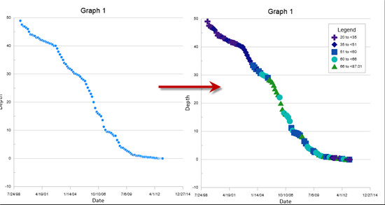 您是否曾经完全自定义图形,然后在最后一刻决定您真正想要的是完全不同的绘图类型?软件的最新版本使您可以自由地改变主意,而不会丢失任何自定义项。只需单击一下,即可将2D散点图转换为类散点图,从而以最小的工作量将数据分组到bin或类中。
