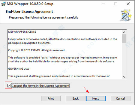 2、双击“MSI_Wrapper_10_0_50_0.msi”运行,勾选协议。