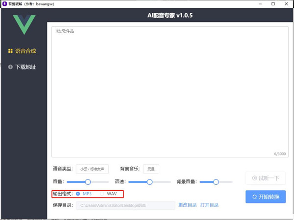 4、可自定义设置保存目录,便于保存转换后的语音文件