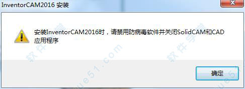 防病毒软件并关闭solidcam和cad应用程序,单击确定;