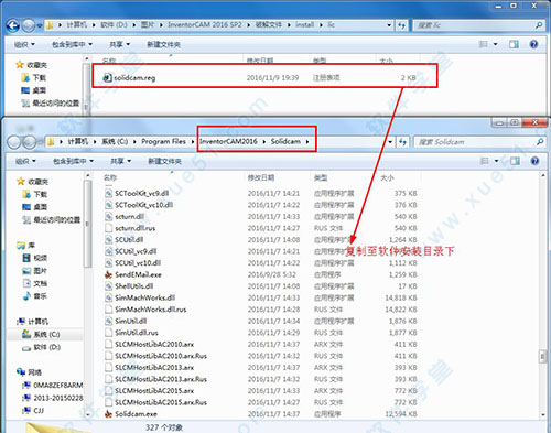 1、先不要打开软件,回到数据包中将破解文件的“LIC文件”中的“solidcam.reg”复制到软件的安装,目录中“C:\Program Files\InventorCAM2016”;