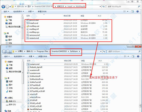 3、再复制“MultiKey64”文件夹到软件安装目录“C:\Program Files\InventorCAM2016”中(若32位系统复制MultiKey32文件夹下全部的文件);